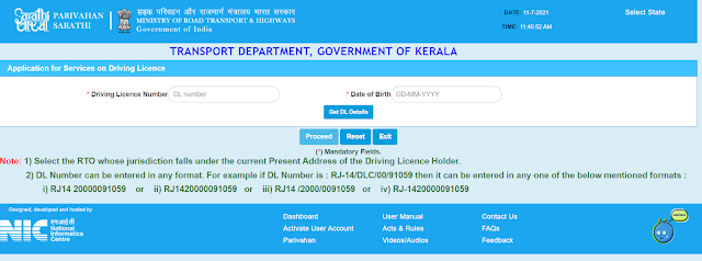 However, after accepting the Driving Licence number, the services that the Driving Licence holder is eligible only would be displayed